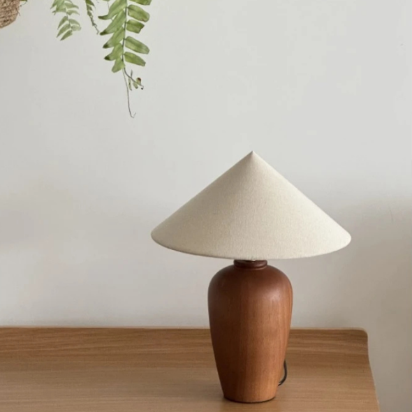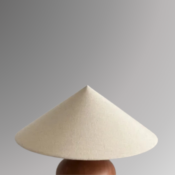 A dialogue of form — the smooth, rounded wood base set in contrast to a tapered, angular shade. At 14.2" in height, Hanao is composed yet expressive, its silhouette offering a sculptural sweep that gently recalls traditional craft. A quiet presence, shaped with care.