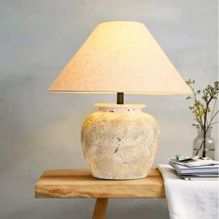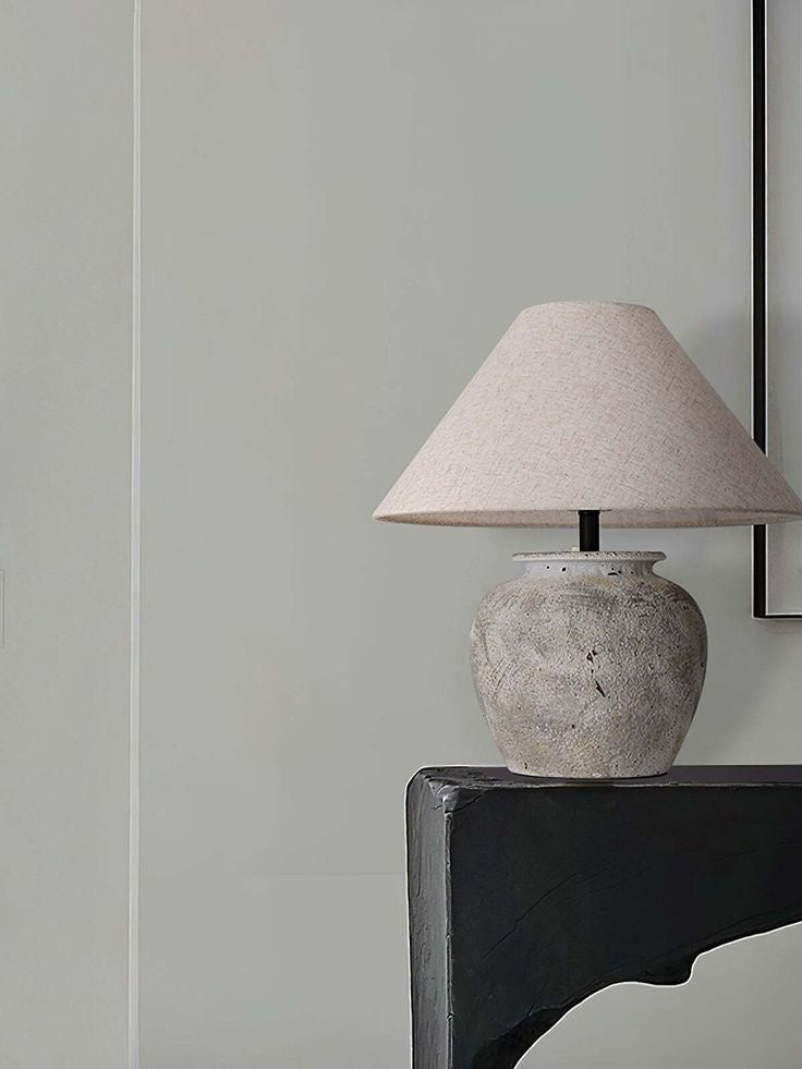 Elemental essence, intentional presence. Grounded with a ceramic base with an iron neck capped with a linen shade, at just over 17" in height, Kaia's form is simple, yet deliberate, delivering a sense of quiet strength and calm. A piece that anchors any space through light and presence.