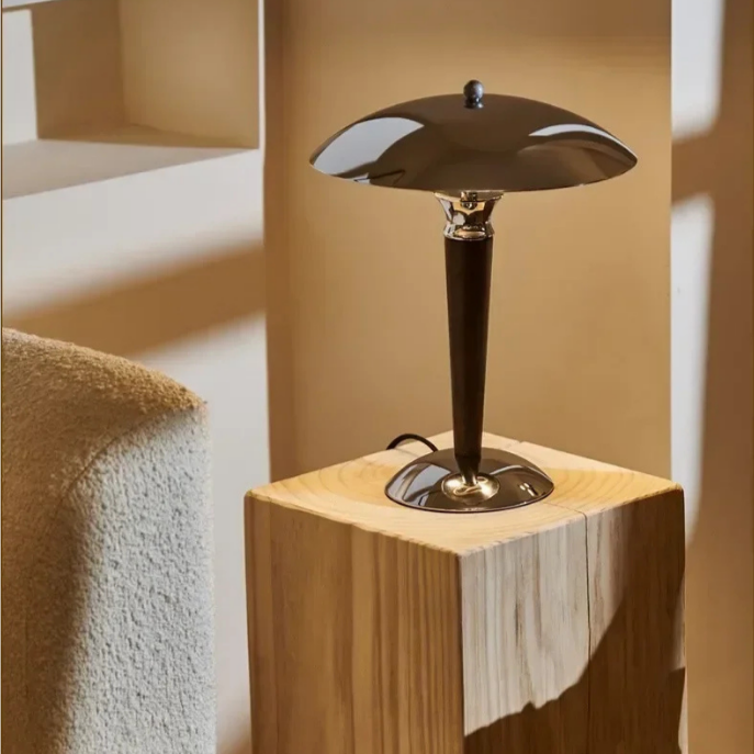 With bold sophistication, Milazzo brings mid-century modern sensibilities into a classic yet modern, sharp and sleek display. Milazzo mixes rich, warm walnut with polished chrome accents, creating a striking interchange of natural texture and sleek sophistication. Standing just over 15” tall, Milazzo carries a streamlined silhouette, offers your space a timeless and sculptural presence of practical light.