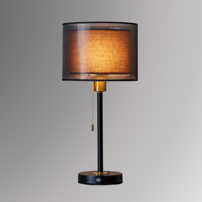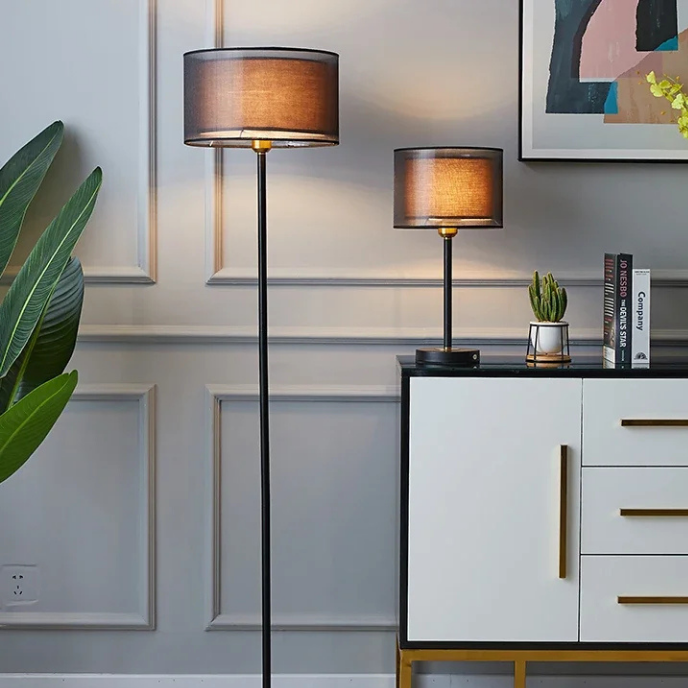 Ansel is a study in quiet refinement. At 63" tall, the floor lamp's silhouette is balanced and assured, defined by a layered shade — a dark mesh outer veil revealing a soft inner fabric. When illuminated, the interplay of materials creates a subtle illusion of depth and texture. A matching 19.7" table lamp echoes the same sculptural language in a more compact form, offering a cohesive lighting story across varied spaces. Finished with an iron frame and classic pull switch, Ansel brings timeless clarity to the room it inhabits.