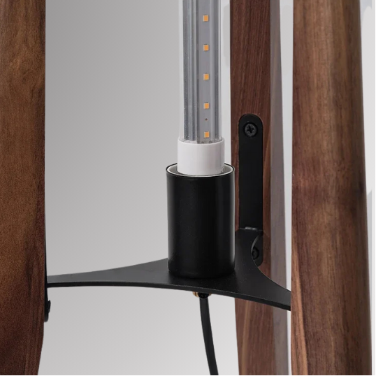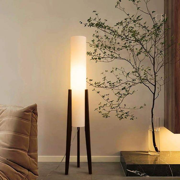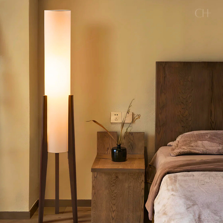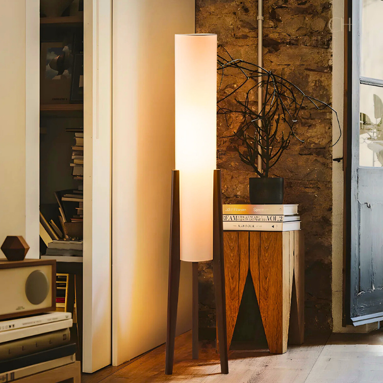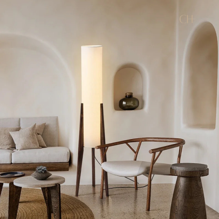 A sculptural floor lamp that blends warmth with architectural clarity. Three wooden legs rise in poised symmetry, supporting a tall cylindrical fabric shade that diffuses light with quiet softness. Standing just over 50 inches, Siena brings balanced form and a natural and grounded elegance to any interior.