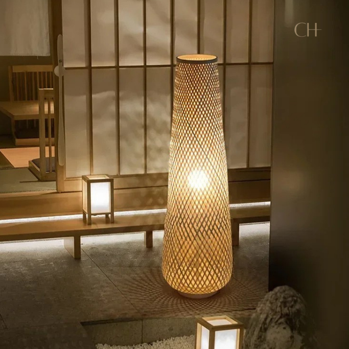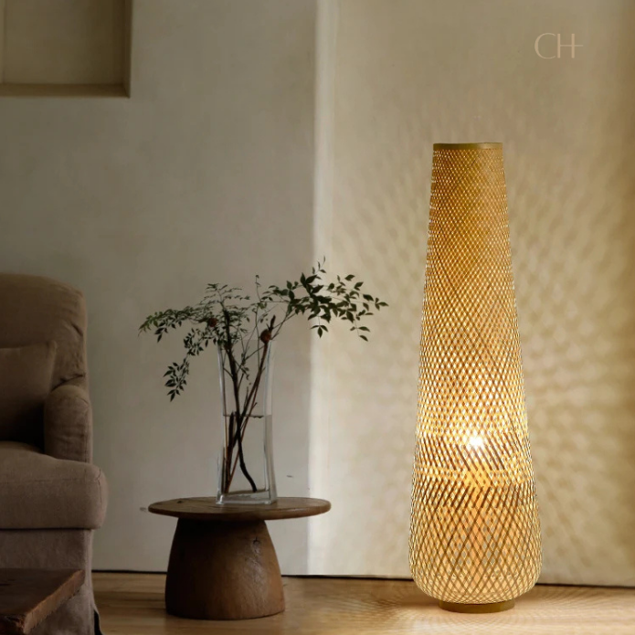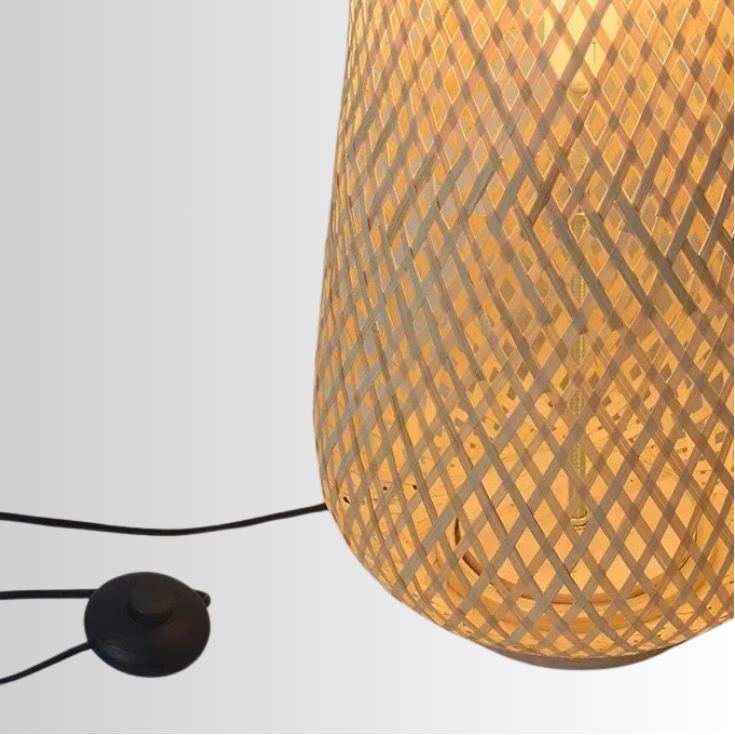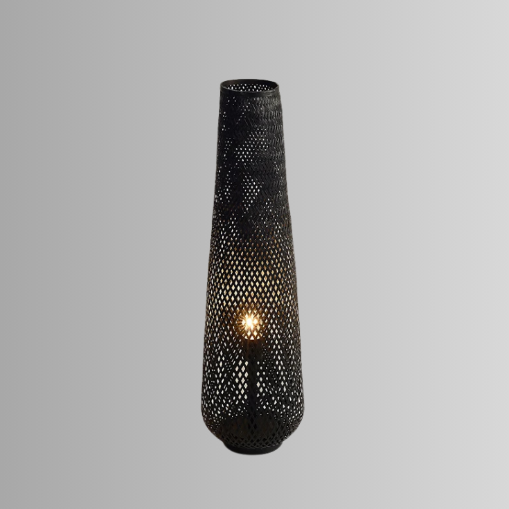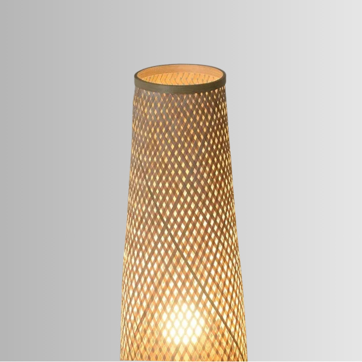 Solace speaks in calm elegance. A cylindrical wicker shade filters light through woven texture, casting a gentle, diffused glow. Standing just over 36 inches, Solace brings a serene poise and natural warmth to modern interiors.